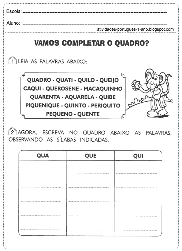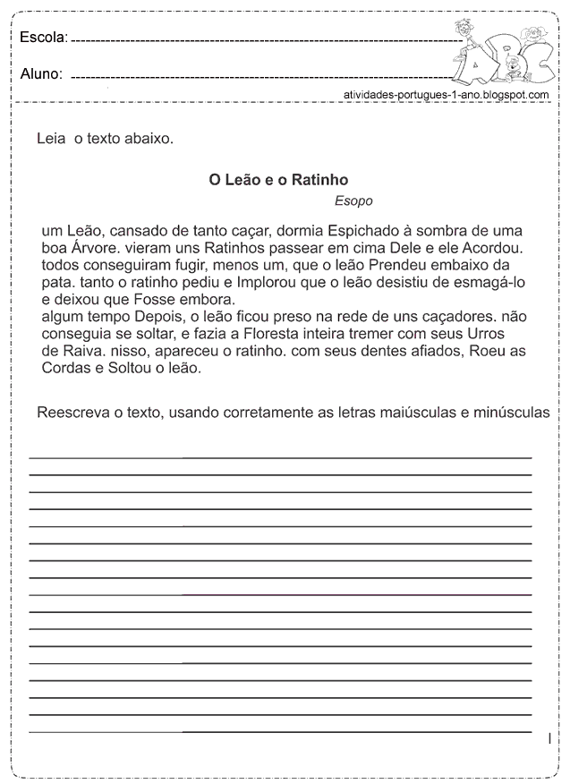 atividades de letras cursivas, atividades de gramática, atividades de ortografia, atividades de letras maiúsculas e minúsculas, entre outros exercícios desenvolvidos para alunos do 1° ano.
