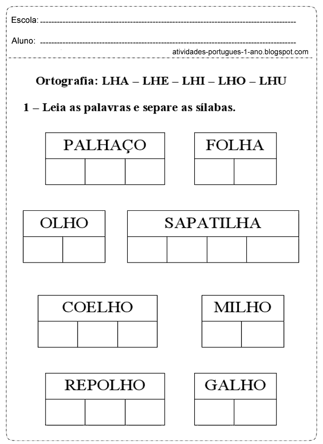 | Leia as palavras e separe as sílabas |