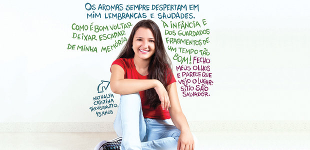A produção da página seguinte é um trecho de Cores, Aromas e Sabores de Infância, de Nathalya Cristina Trevisanutto, 13 anos. Aluna do 8º ano do CEEFM Doutor Duílio T. Beltrão, em Tamboara, a 503 quilômetros de Curitiba, ela foi uma das vencedoras, em 2012, da Olimpíada de Língua Portuguesa, na categoria memórias literárias, ao contar lembranças de sua professora. Todos podem ter um desempenho como o de Nathalya. Para isso, o professor de Língua Portuguesa deve garantir que entendam e produzam textos cada vez mais complexos desde a alfabetização inicial até o 9º ano.