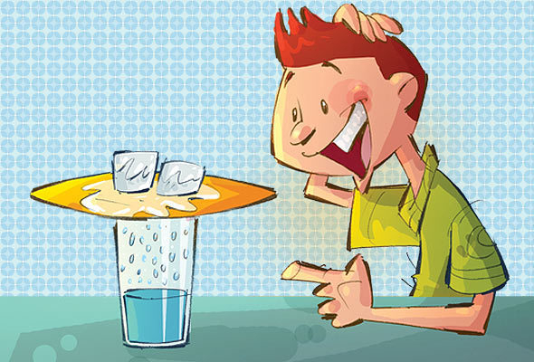 Depois, coloque os cubos de gelo em cima do prato. Repare nas pequenas gotas que vão parecer dentro do pote.