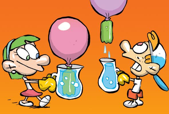 Encaixe a bexiga na boca da garrafa e peça a um adulto que esquente água no recipiente de vidro. Coloque a garrafa no recipiente e veja que a bexiga vai ficar cheia.