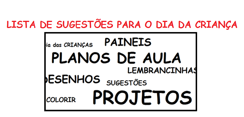 Hoje trago para vocês uma LISTA DE SUGESTÕES para o dia das crianças, com várias Atividades, Desenhos, Plano de Aula, Projetos, Lembrancinhas, Painéis e muito mais.
