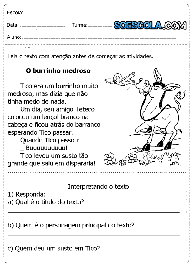 - Interpretação de texto para o 1° ano