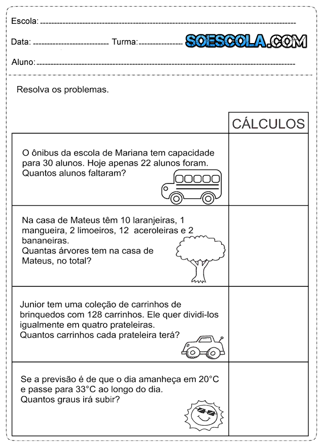 | Problemas de matemática para o 3° ano do ensino fundamental |