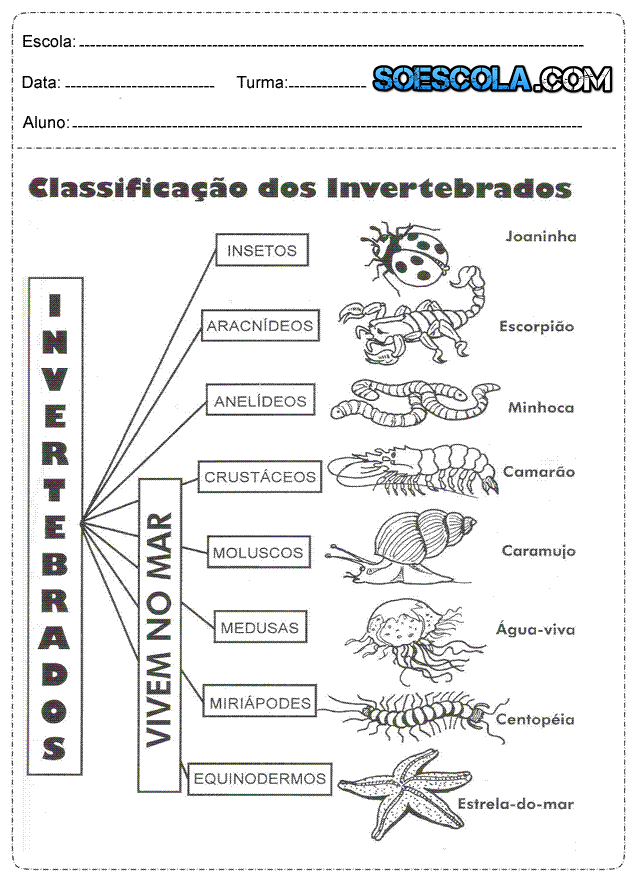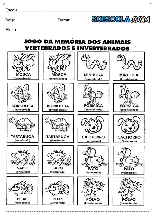| Atividades de ciência – animais vertebrados e invertebrados |