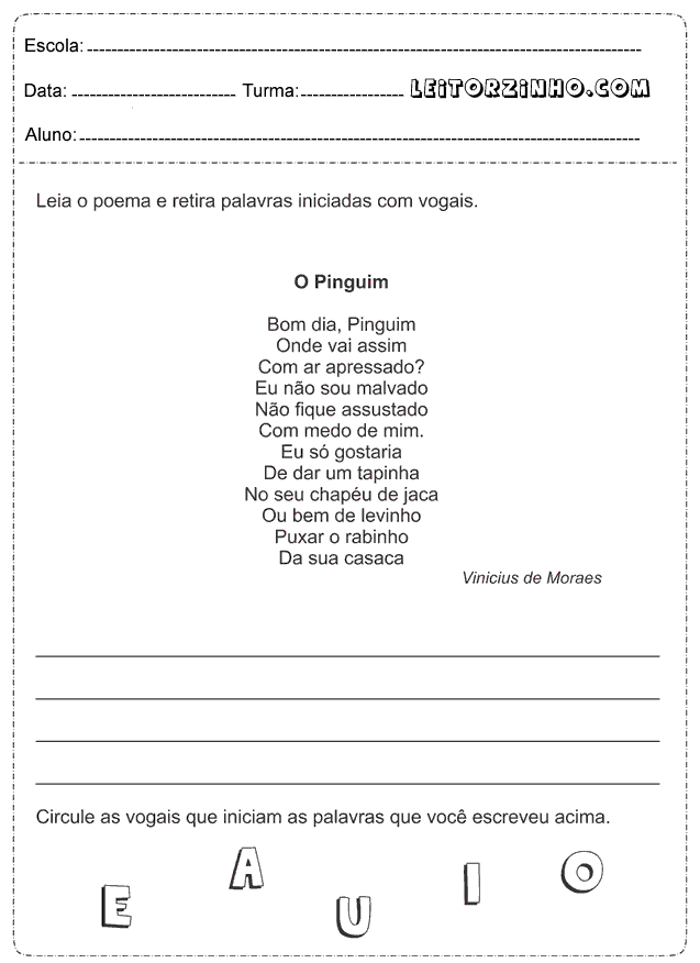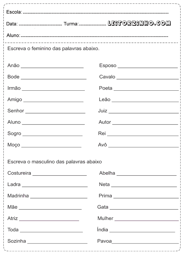 Atividades de português para o 1° ano do ensino fundamental com exercícios sobre, complete as palavras usando os encontros vocálicos, circule o animal que tem um encontro vocálico, escreva o feminino das palavras, escreva o masculino das palavras, separe as palavras e escreva e coloque cada uma no seu devido lugar e pinte a letra e ligue os números.