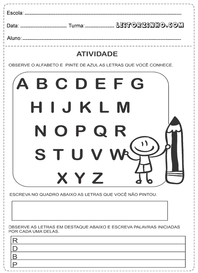 | Observe o alfabeto e pinte de azul as letras que você conhece |