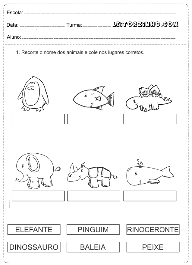 | Recorte o nome dos animais e cole nos lugares corretos |