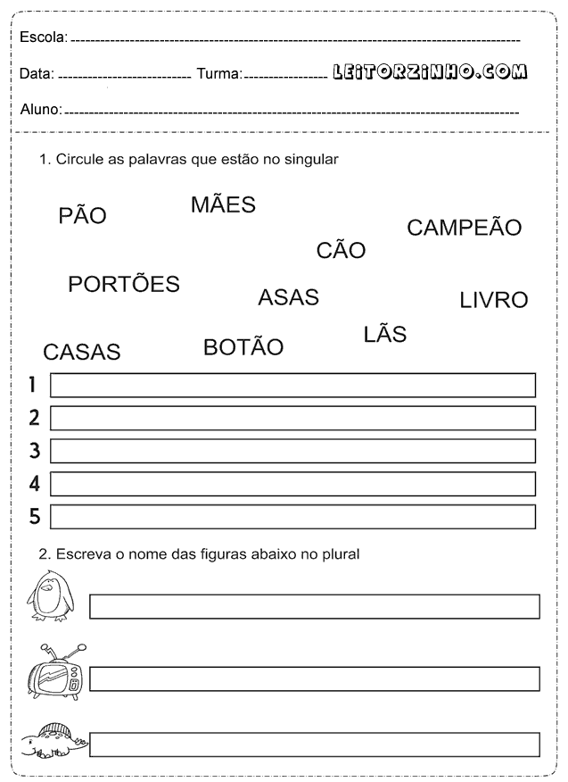 | Circule as palavras que estão no singular |