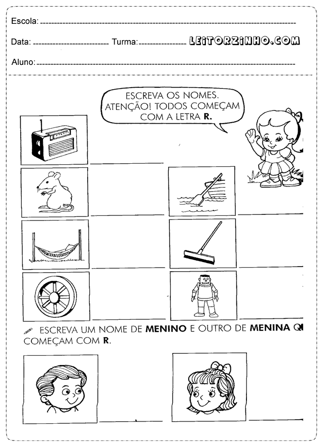 | Escreva os nomes. Atenção! Todos começam com a letra R |