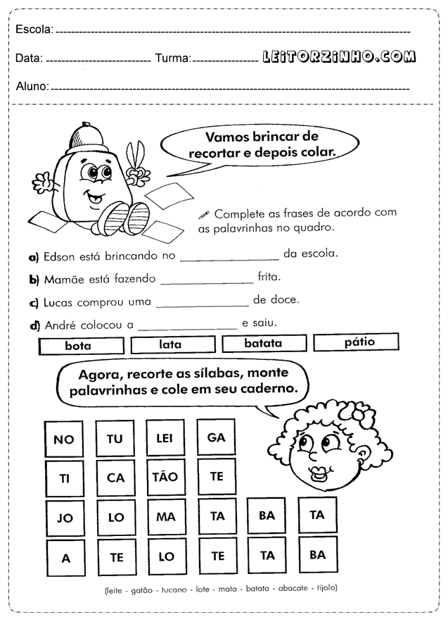 | Recorte as sílabas, monte palavrinhas e cole em seu caderno |