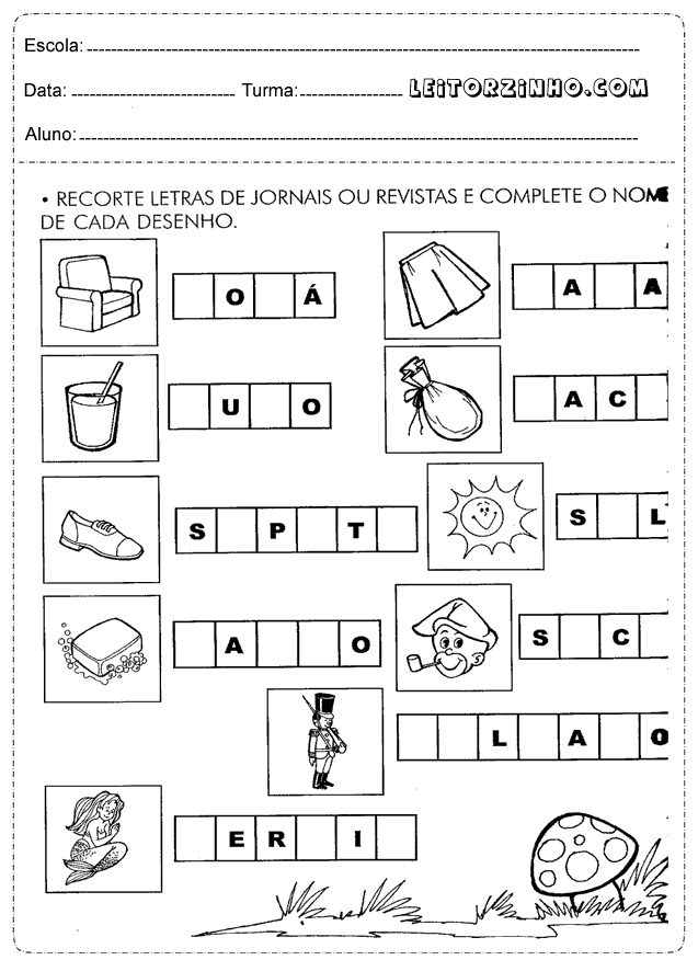 | Recorte letras de jornais ou revistas e complete o nome de cada desenho |