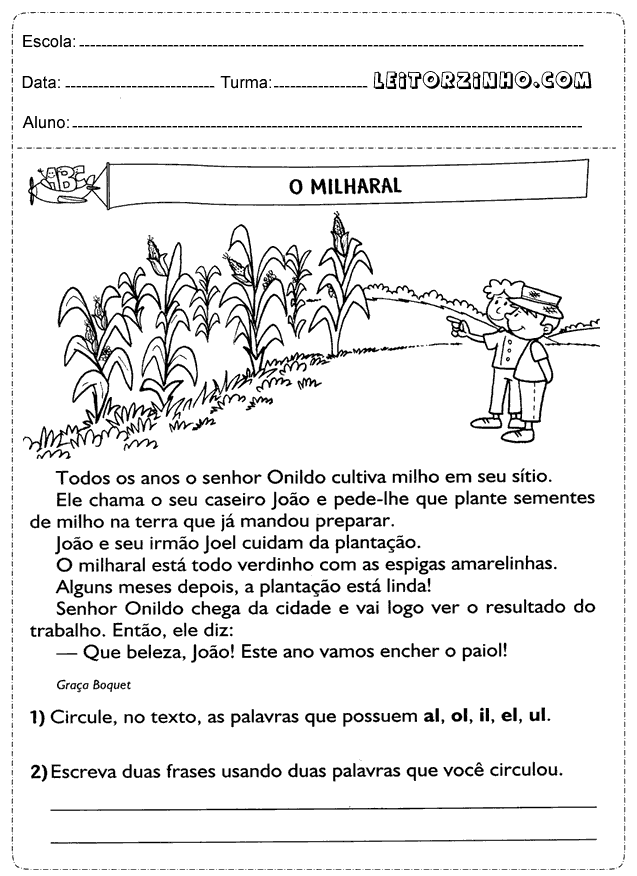| Circule, no texto, as palavras que possuem al, ol, il, el, ul |