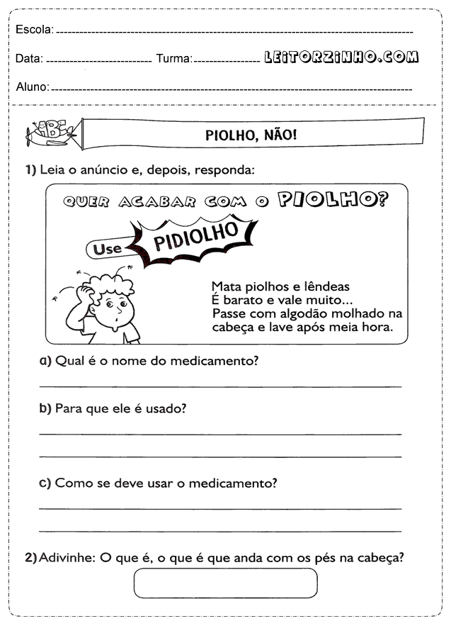 | Leia o anuncio e depois responda. Interpretação de texto |