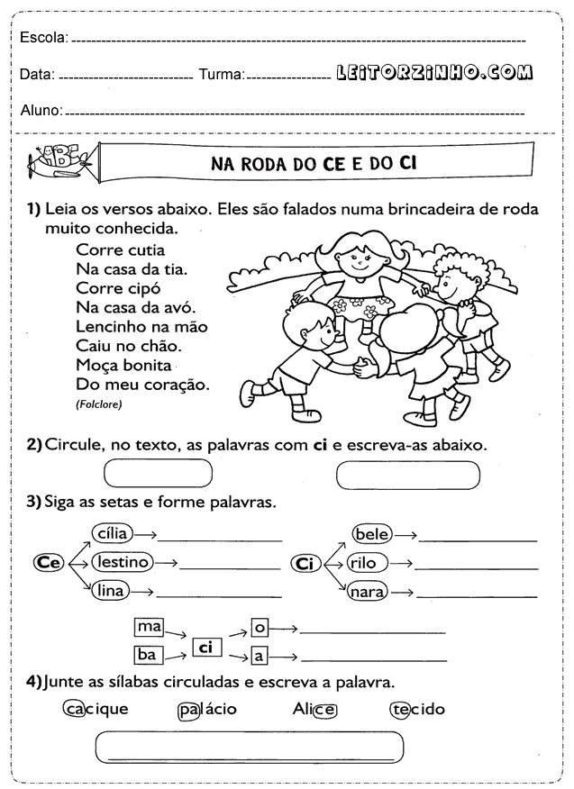 | Circule, no texto, as palavras com Ci e escreva-as, Siga as setas e forme palavras |