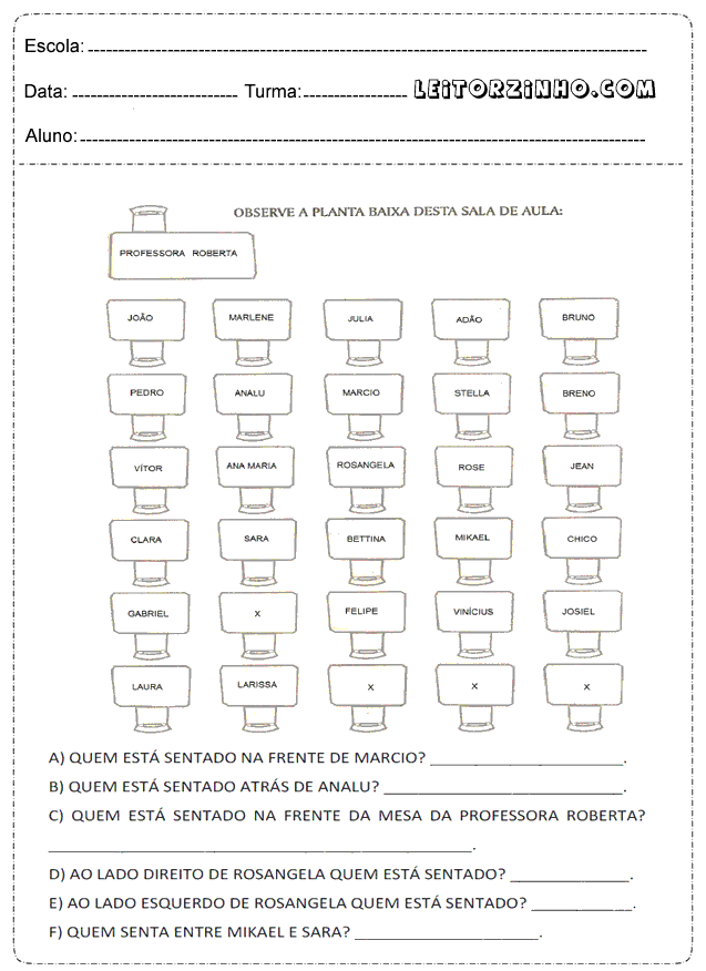 | Observe a planta baixa desta sala de aula e responda as perguntas |