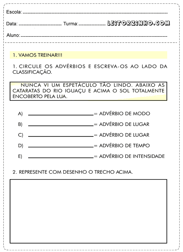 | Circule os advérbios e escreva-os ao lado da classificação |