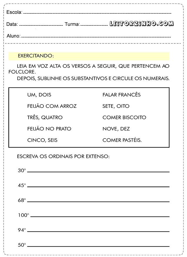 | Escreva os ordinais por extenso |