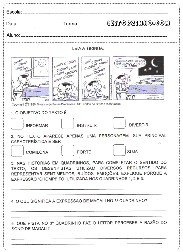 | Leia a tirinha e interprete o texto |