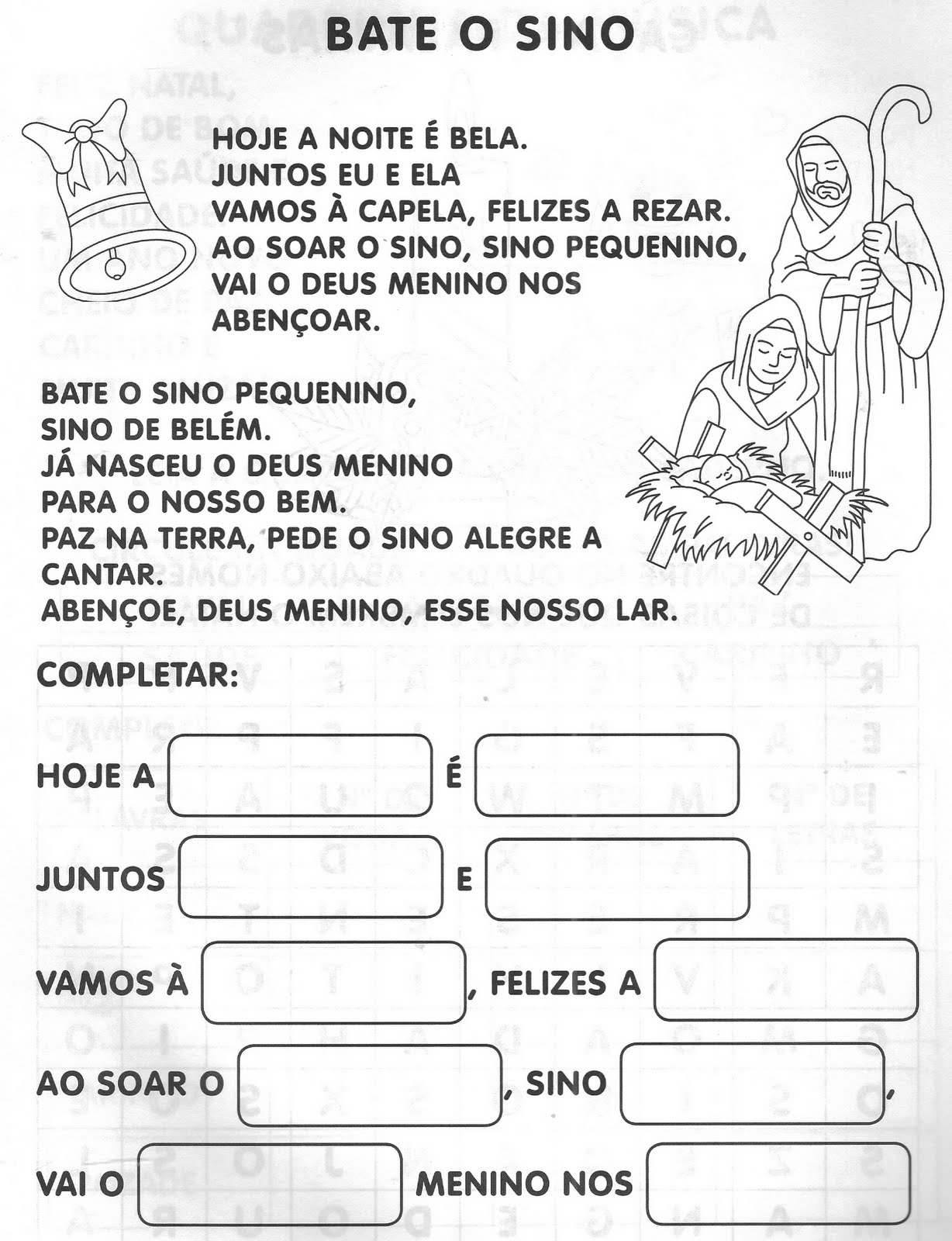Aqui compartilho atividades de colegas e imagens da net sobre canções que muito curti como BATE O SINO e SAPATINHO NA JANELA que agora canto com meus aprendizes na Sala de Apoio Pedagógico.
