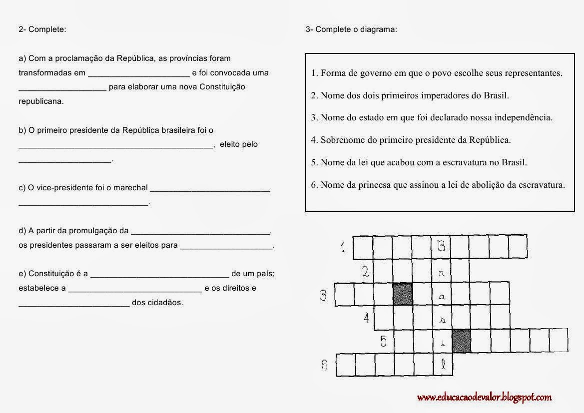 | Atividades Proclamação da Republica 4° ano |