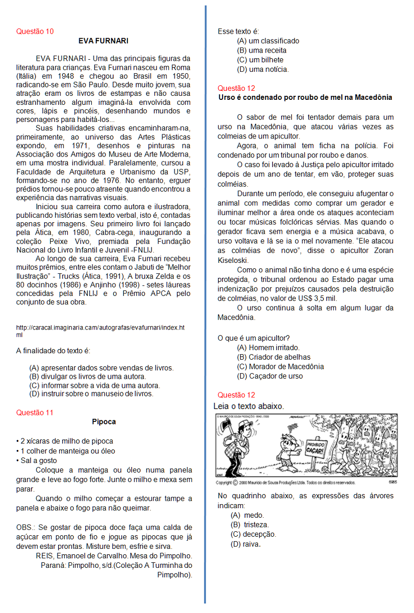 | Avaliação de Português: 4º ano |