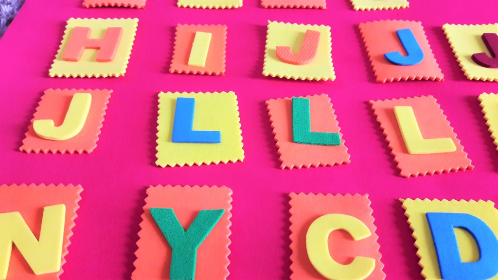 1- Comece cortando os retângulos de EVA, um pouco maior que as letras.
