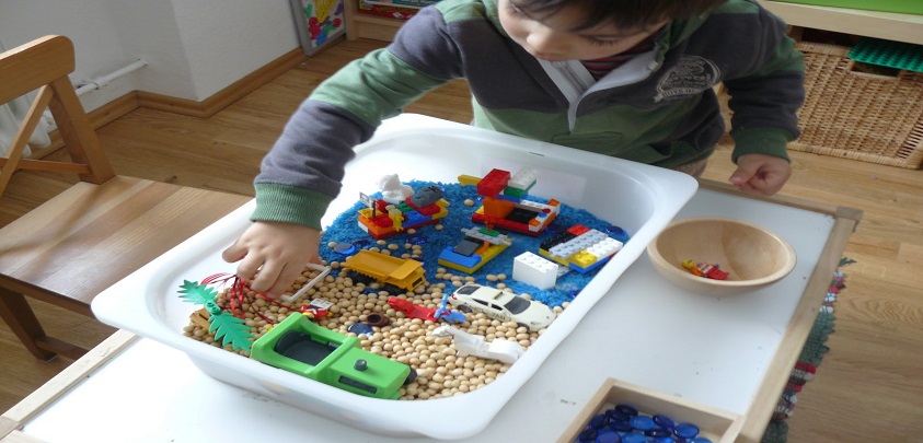 Digo “brinquedo”, assim entre aspas, também porque a caixa sensorial não tem objetivo meramente lúdico, é um caminho através do qual a criança vai, aos poucos e de forma muito envolvente, descobrindo e compreendendo o mundo real que o cerca e estabelecendo relações lógicas através do brincar e organizar mentalmente esse o mundo.