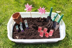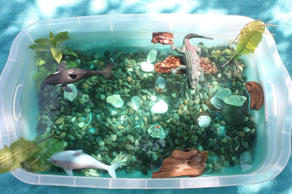 Assim, o primeiro passo para criar sua caixa sensorial é escolher um tema. Depois, basta montá-la criando um fundo e inserindo os objetos temáticos.