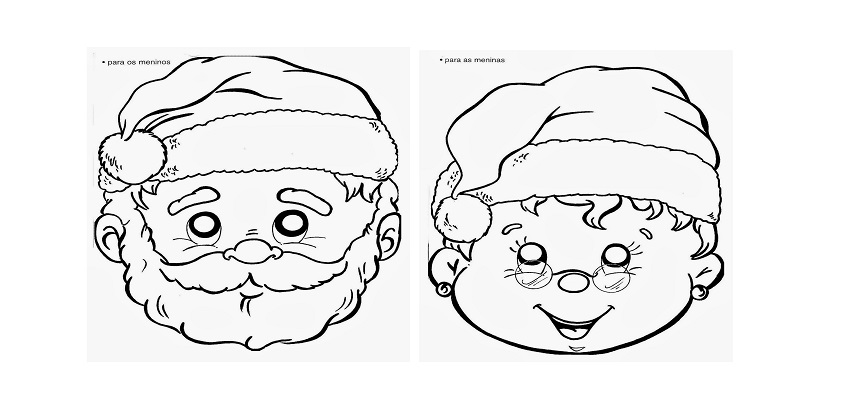 | Máscara de Papai Noel e Mamãe Noel – Imprimir, recortar e pintar |