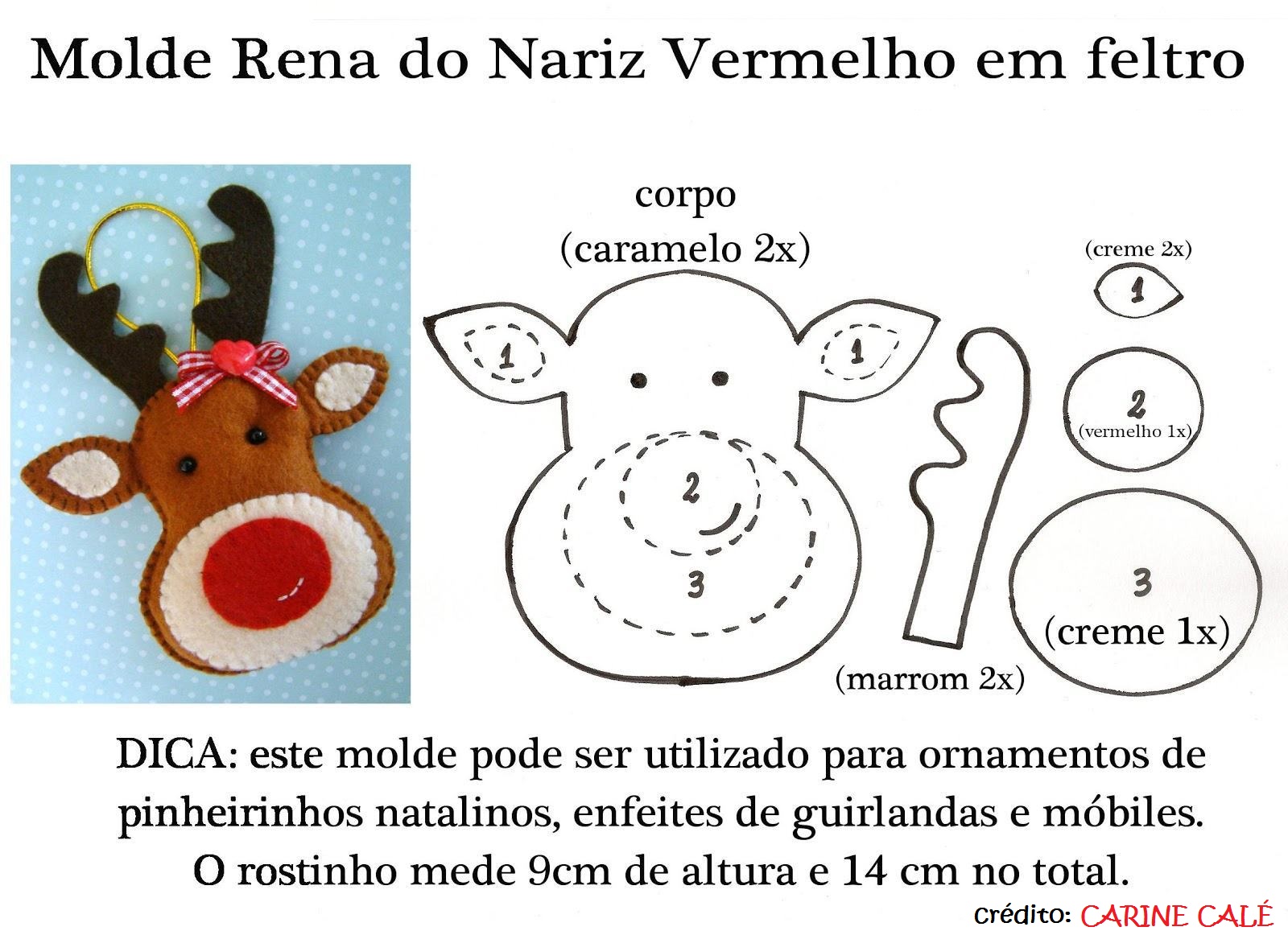 | Moldes: Rena do Nariz Vermelho em feltro |