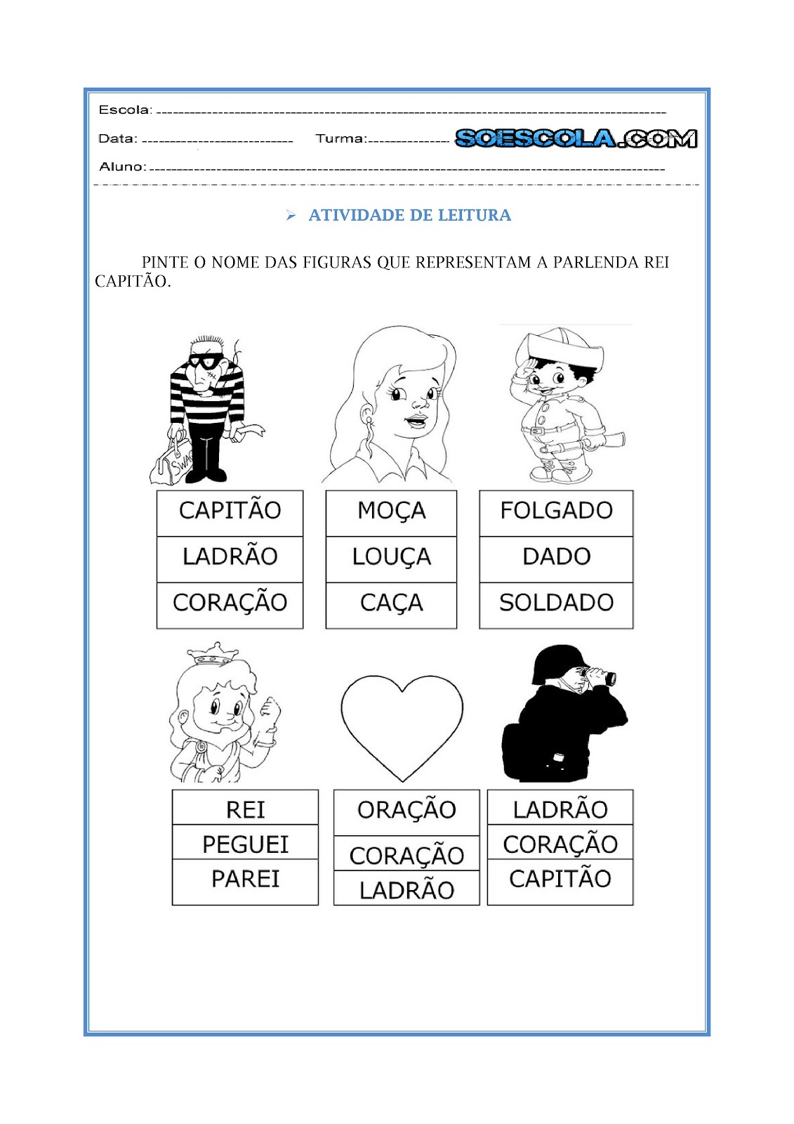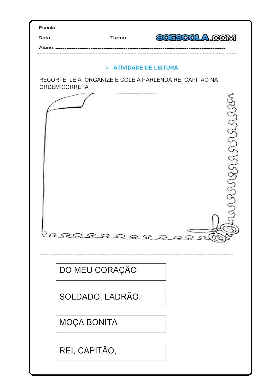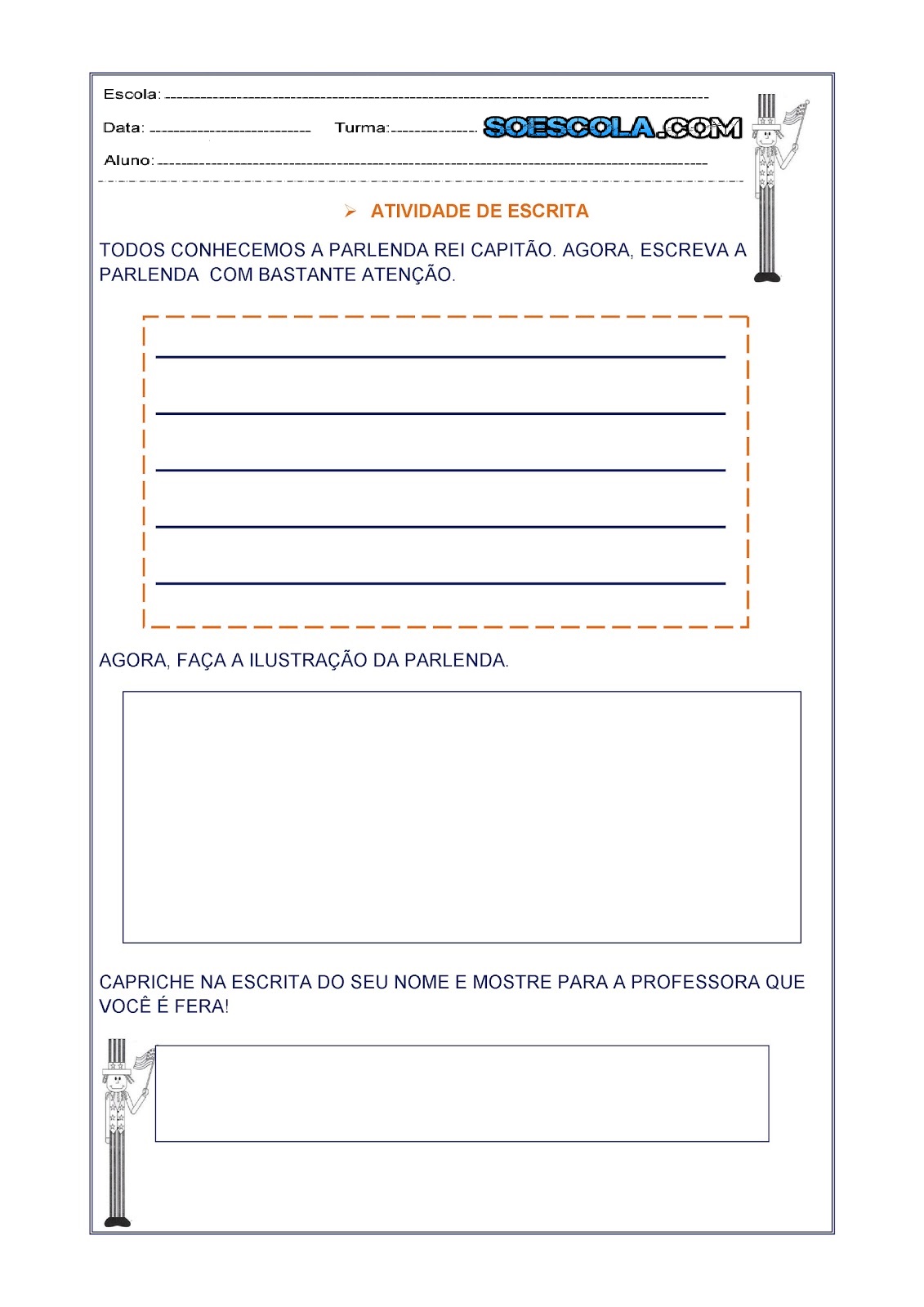 Hoje trago para vocês uma Sequência Didática para alunos do 2º ano do Ensino Fundamental ‘Rei Capitão’. Atividades de Leitura e Escrita.
