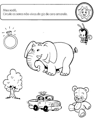 - A 1ª atividade é para circular os seres não-vivos de amarelo.