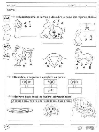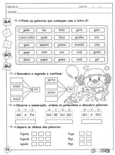 | Atividades para Imprimir – Família silábica letra G |