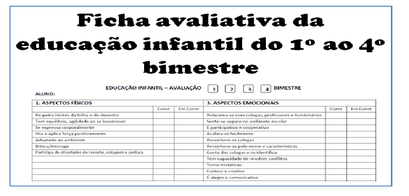 Ficha avaliativa da educação infantil do 1º ao 4º bimestre