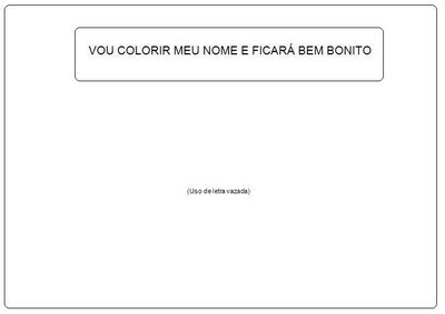 Escrever o nome com o dedinho molhado em guache ou colorir o nome escrito pelo professor, enfeitando bastante as letras!