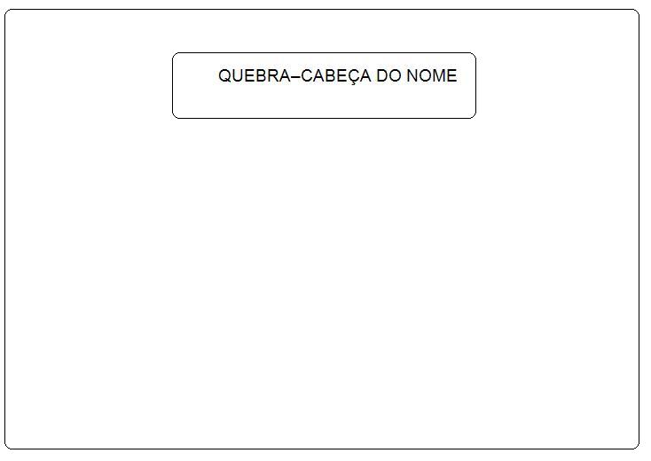3.Aqui a criança irá colar as pecinhas de um quebra-cabeças feito pelo professor com as letrinhas do seu nome. O professor pode mimeografar uma folha com várias letras e deixar que a criança encontre as letras de seu nome, recorte e cole aqui. Pode também escrever o nome manuscrito num retângulo de cartolina colorida, cortá-lo em alguns pedaços e deixar que a criança junte os pedaços, organize e cole aqui: