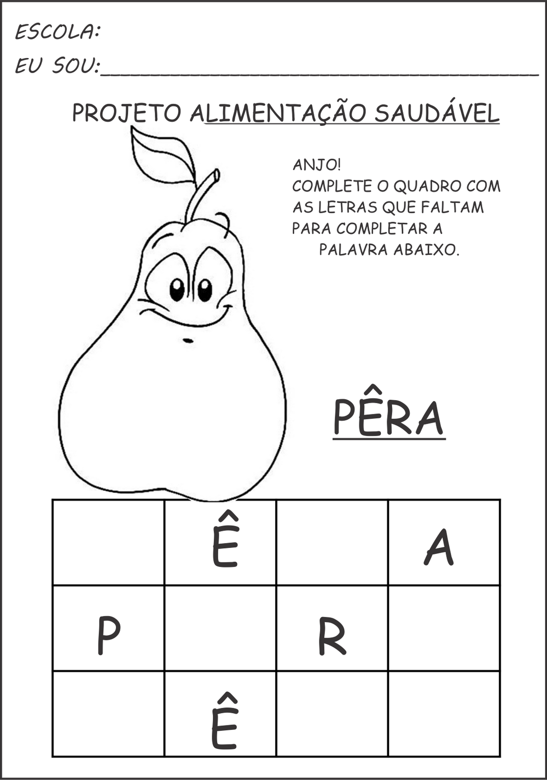 - A 1ª atividade para educação infantil é para completar a palavra com as letras que faltam.