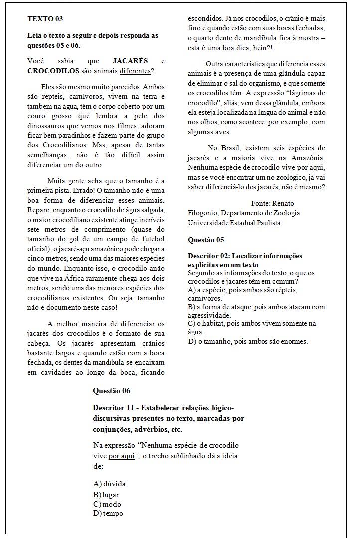 SIMULADINHO PROVA BRASIL 5º ANO COM DESCRITORES