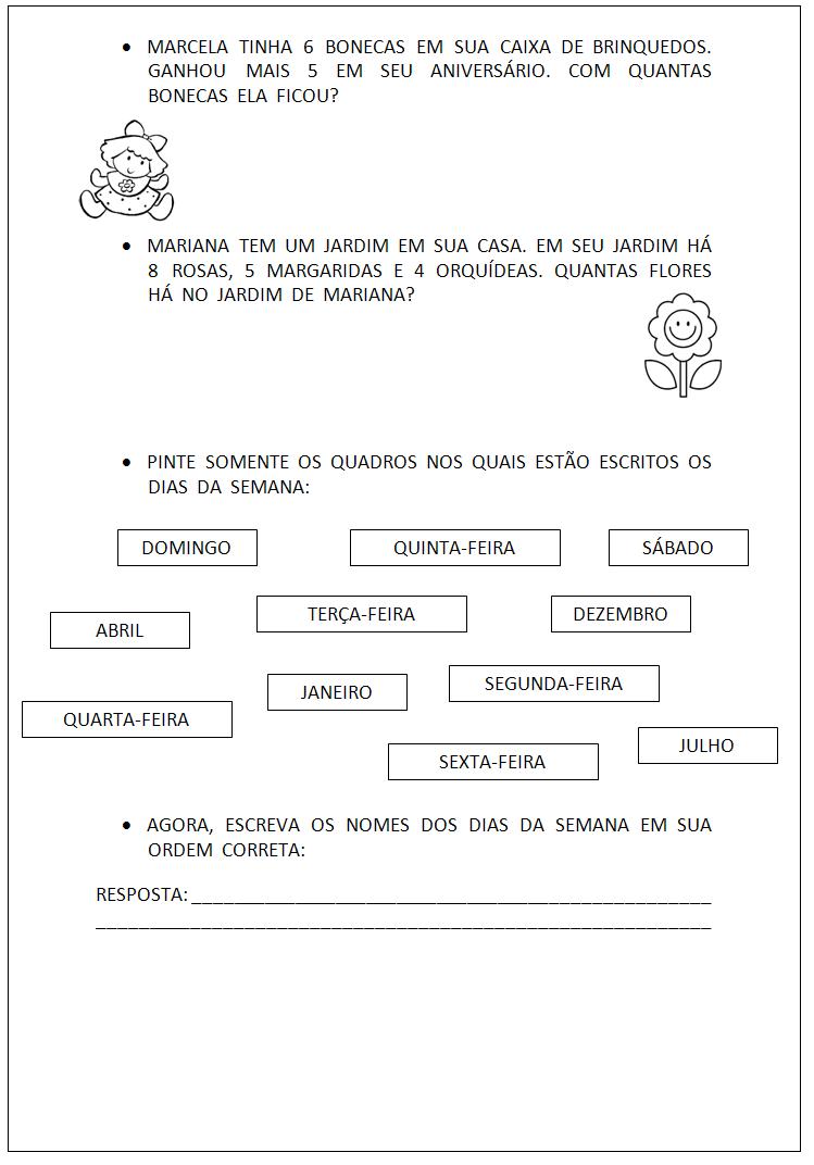 - A 2ª atividade é para resolver duas situações problema, pintar os dias da semana e escrever os nomes dos dias da semana.