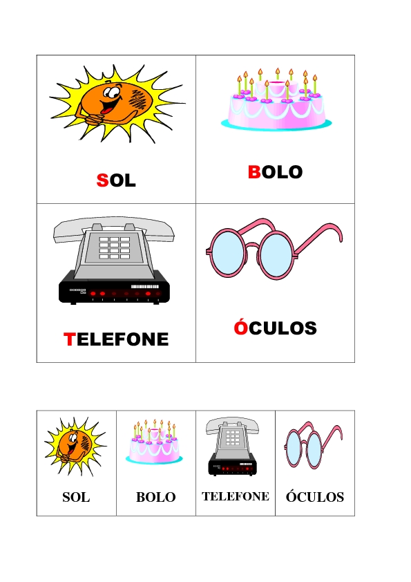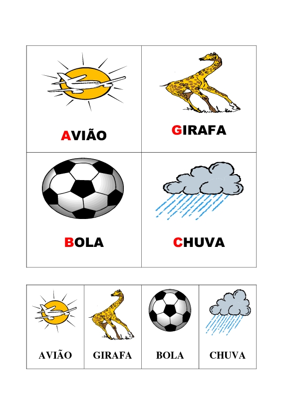 Utilize as imagens grandes com a primeira letra sublinhada para mostrar para os alunos e depois mostre as menores para o aluninho ler novamente.