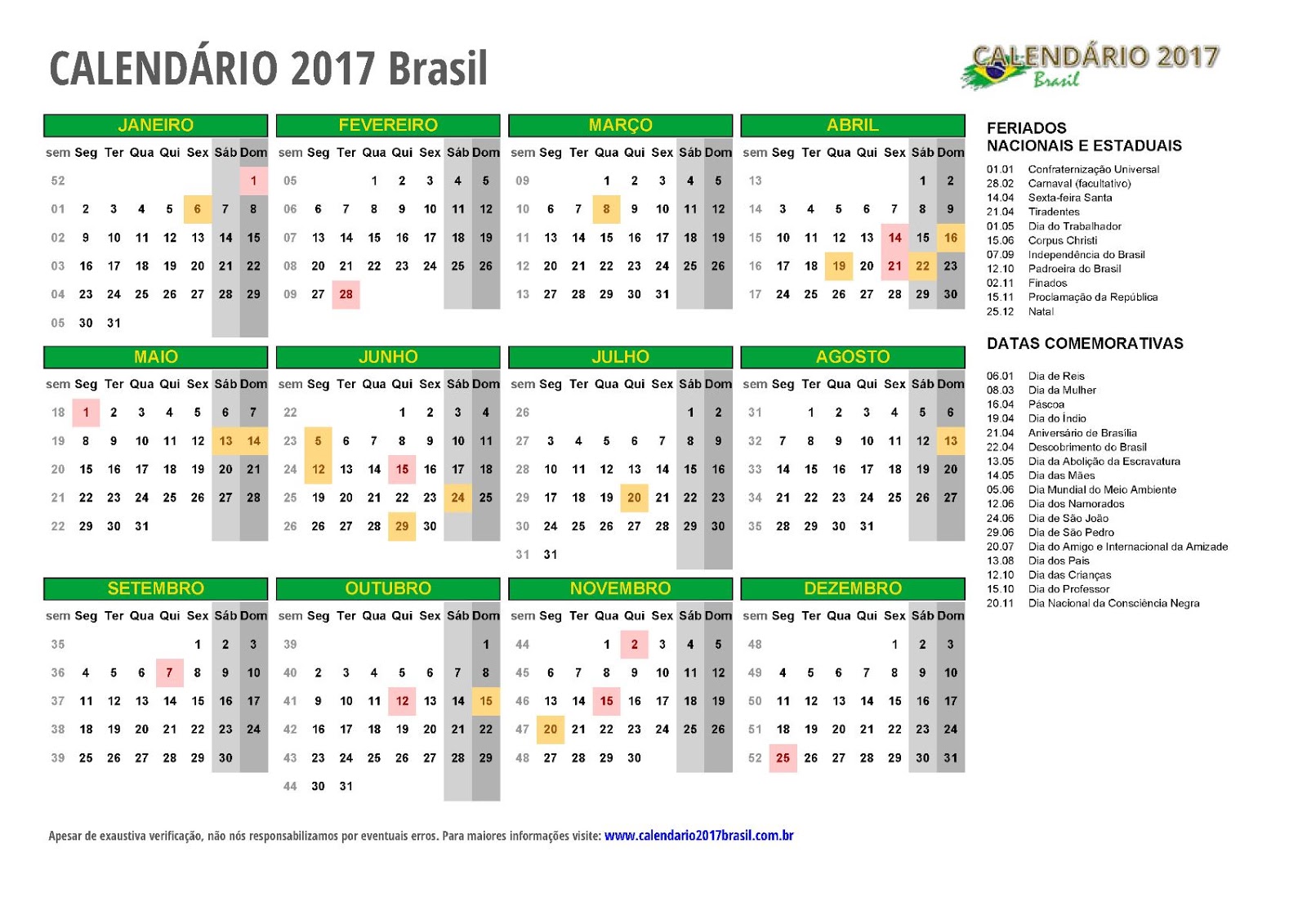 Calendários 2017 para imprimir em Português