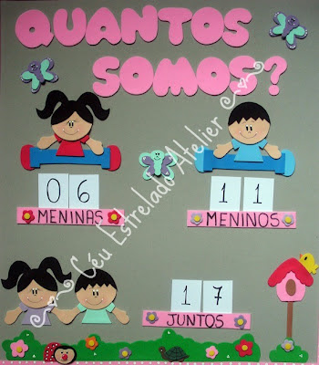 Olá amigos e amigas do SÓESCOLA. Nesta postagem trago para vocês várias sugestões de cartazes para sala de aula (quantos somos) com moldes prontos para imprimir.