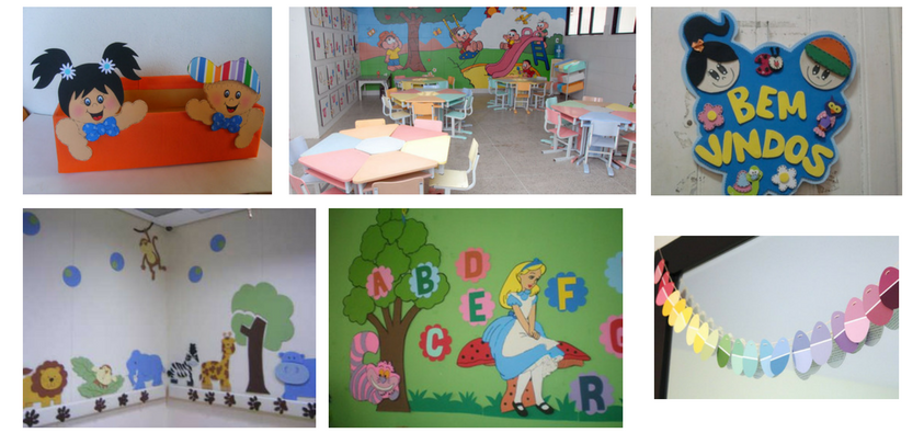 O importante é que a sala de aula fique bonita e convidativa, mas se o professor está sem muito tempo para preparar coisas diferentes, o ideal é que se busque figuras em EVA já prontas, que podem ser compradas em lojas de artesanato ou ainda em papelarias. Outra dica é comprar tapetes em EVA bem coloridos, assim, as crianças se sentirão mais confortáveis quando forem se sentar ao chão para executar alguma tarefa. Além disso, o colorido do EVA pode ser usado para chamar a atenção, principalmente no cantinho da leitura, por exemplo.