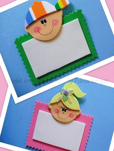 Olá amigos e amigas do SÓ ESCOLA. Nesta postagem trago para vocês uma sugestão de crachás feitos de eva com moldes.