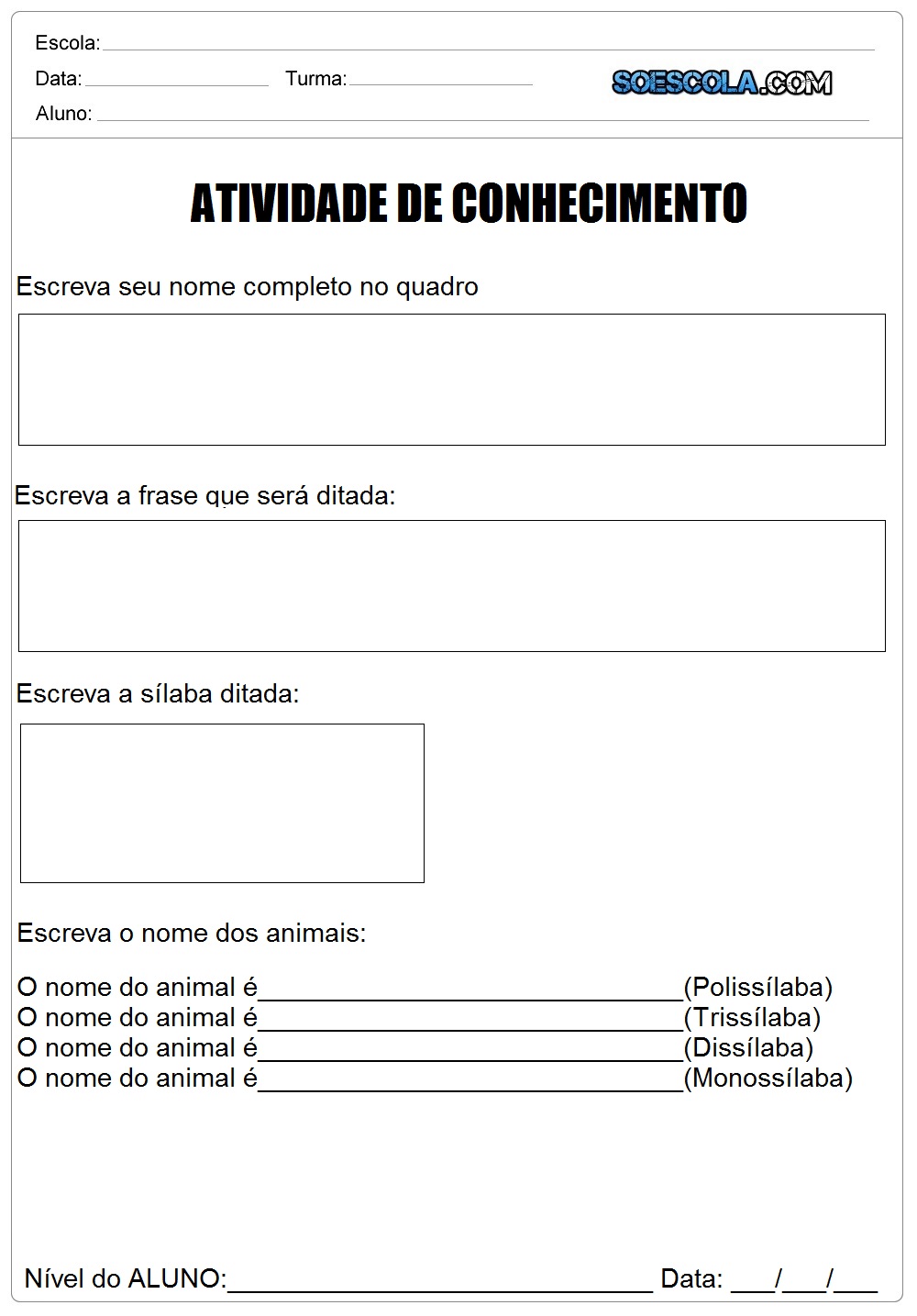 Ficha para Diagnóstico do 1º dia de aula: Quando iniciamos o ano letivo, temos a preocupação de sabermos em qual nível recebemos nossos alunos, não é verdade? Isso é uma ação que resultará em todas as atividades que serão aplicadas em sala de aula, nos planejamentos e em toda rotina escolar.