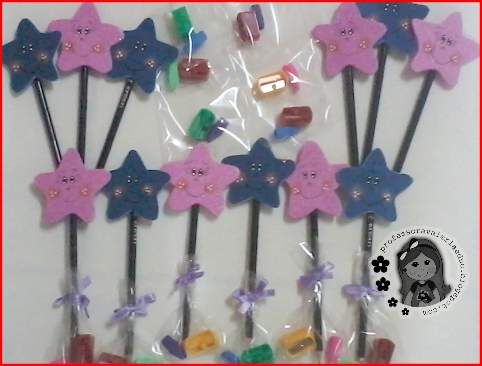 Lembrancinha volta às aulas Publicado em 15 de janeiro de 201722 de dezembro de 2020 por SÓ ESCOLA Lembrancinha volta às aulas Olá amigos e amigas, nesta postagem trago para vocês uma sugestão de lembrancinha para a volta às aulas. MATERIAIS: EVA NAS CORES ROSA E AZUL; SAQUINHOS DE PLÁSTICO; LÁPIS GRAFITE; BORRACHA PONTEIRA; APONTADOR; FITA PARA DECORAR Veja também: → LEMBRANCINHAS PRIMEIRO DIA DE AULA * Se preferir pode trocar o “LÁPIS GRAFITE; BORRACHA PONTEIRA; APONTADOR;” por balas, ou chocolates. Confira imagens – Lembrancinha volta às aulas Lembrancinha volta às aulas Lembrancinha volta às aulas Lembrancinha volta às aulas Lembrancinha volta às aulas Lembrancinha volta às aulas Confira Moldes de Estrelas – Lembrancinha volta às aulas Molde de estrela Molde de estrela Molde de estrela Molde de estrela Molde de estrela Molde de estrela Molde de estrela Fonte: Ensinando com Carinho