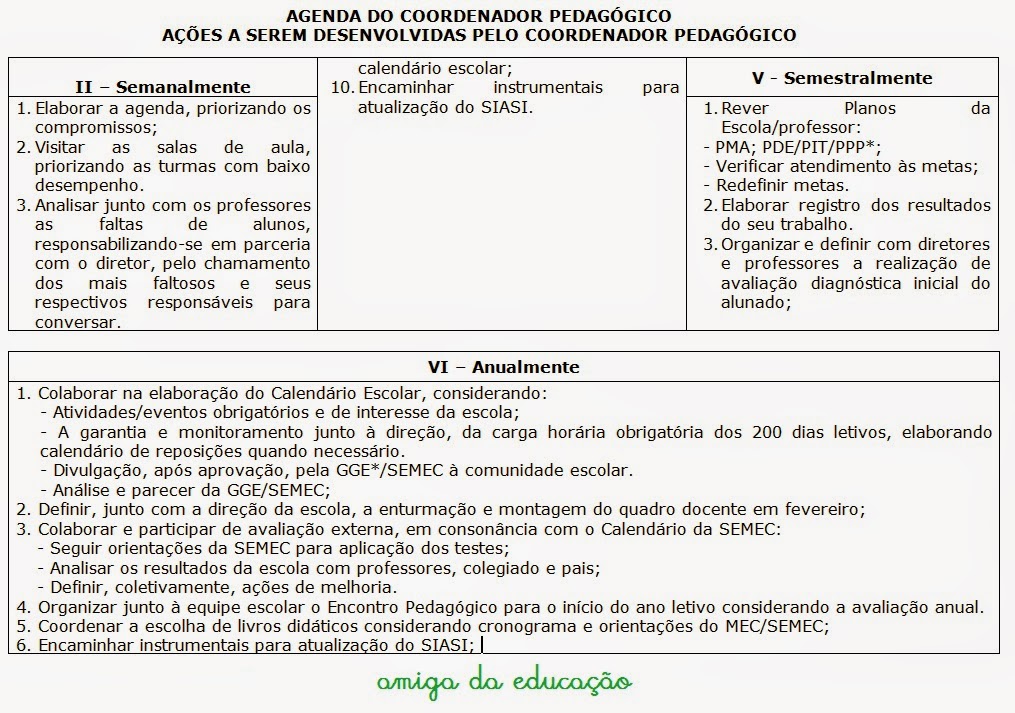 | Modelo de agenda do Coordenador Pedagógico |