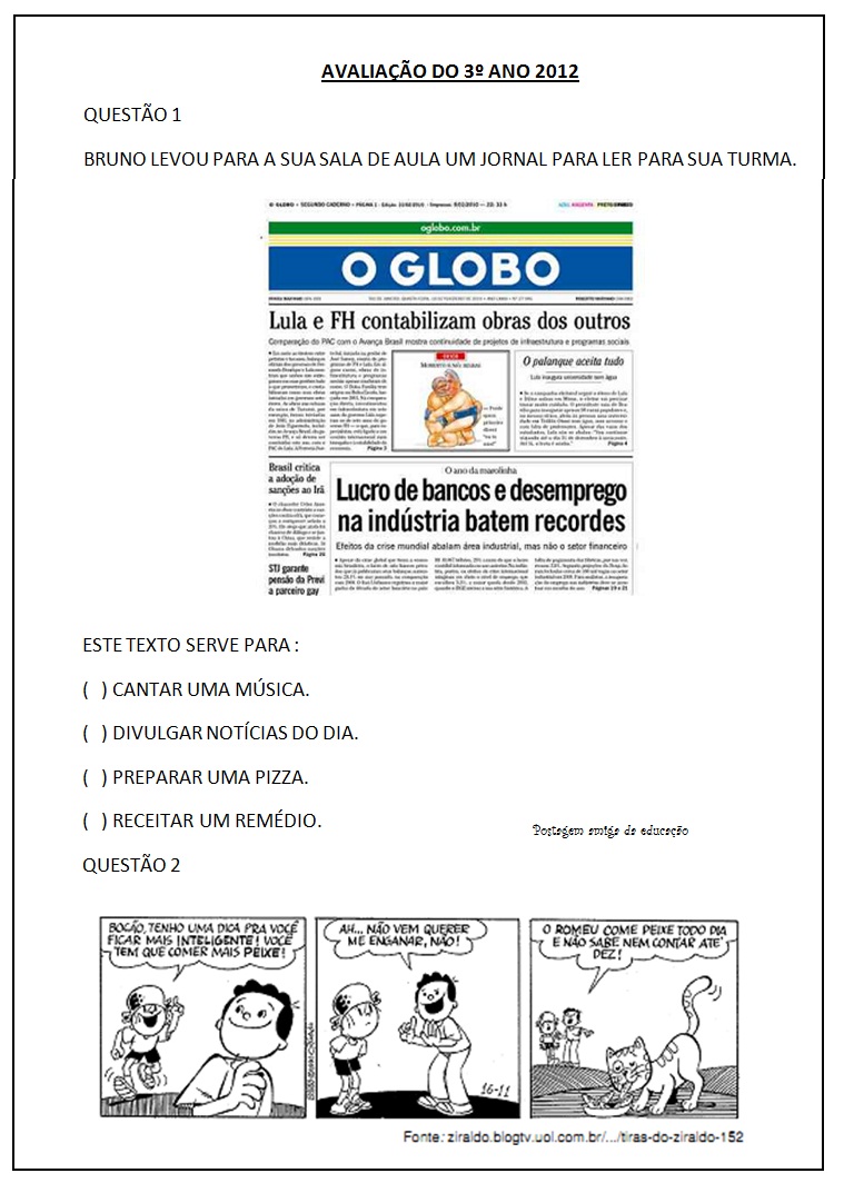 Olá amigos e amigas. Nesta postagem trago para vocês um Modelo de atividades diagnósticas para terceiro ano do Ensino Fundamental para baixar em WORD e PDF.