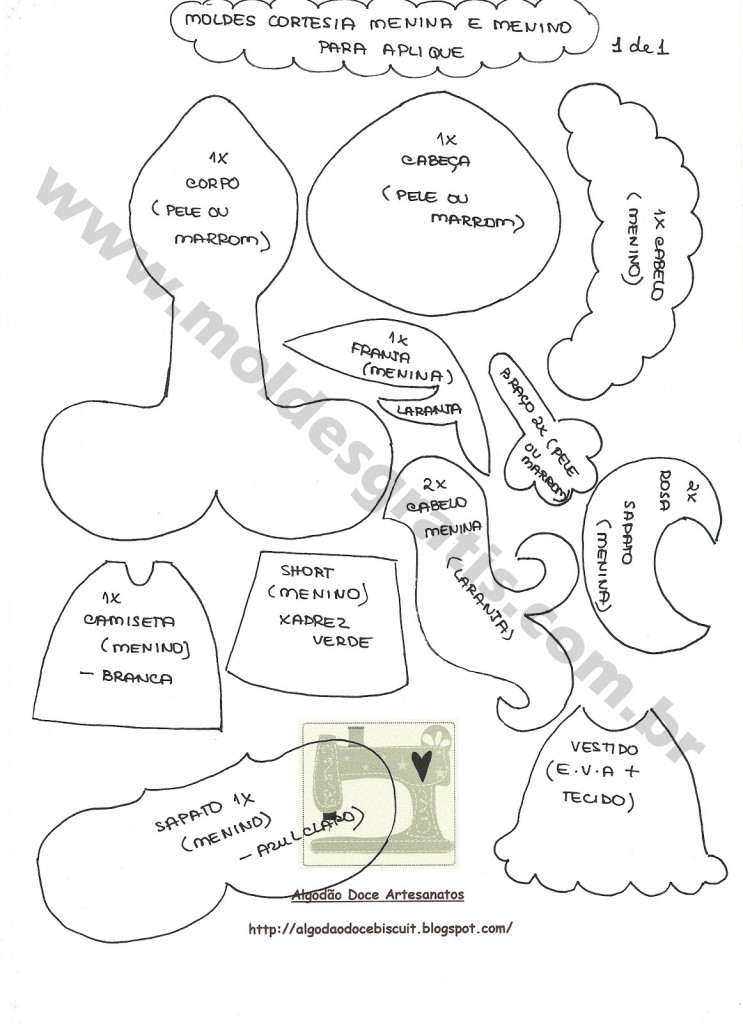 O molde é simples e os resultados valem a pena. Utilize essa ideia e sua criatividade para caprichar na criação das meninas e dos meninos.